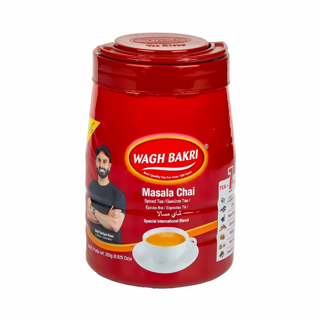 Immerse yourself in warmth and tradition in India with Wagh Bakri Masala Chai—a blend of strong premium tea leaves with authentic Indian spices such as cardamom, cinnamon, cloves, ginger, and black pepper. Wagh Bakri Masala Chai has an inviting aroma, with a robust taste and refreshing spiced flavor. Perfect for a cup of masala chai to start your day, or to unwind in the evening.