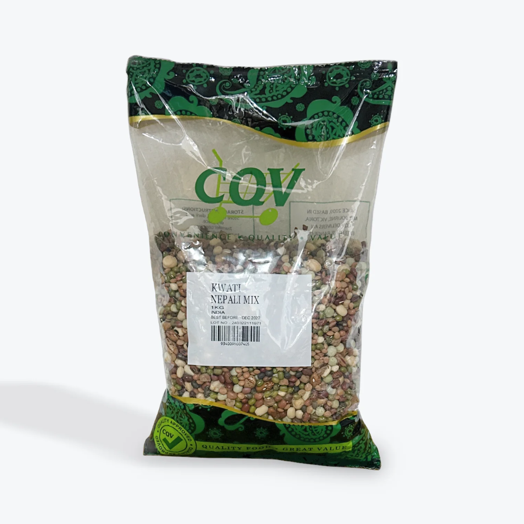 CQV Kwati Nepali Mix 1kg is the traditional nine sprouted beans and lentils that are put together to make “Kwati”, a hearty Nepali soup. With high protein and fiber content, this product is healthy and delicious! The 1kg size provides enough for many servings. It is great for the whole family or to share with friends and guests. CQV provides quality ingredients and authentic flavors from Nepal; Ingredients for festive cooking or for a nutritious everyday meal.